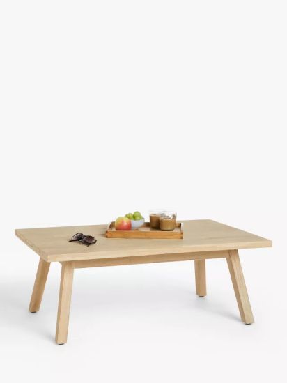 • Suitable for the garden or conservatory, our garden furniture is made from acacia wood and has been limed to protect it and bring out the beauty of the wood grain. The rectangular coffee table seats up to four people.