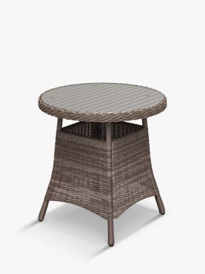 • Key Features: Round Garden Bistro Table, handwoven, 5mm round synthetic wicker, sturdy aluminium frame, tempered glass top for extra strength.
