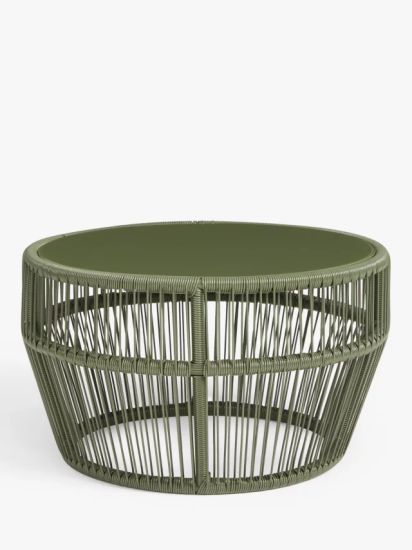 Made of powder-coated steel and a polyethylene woven construction, this round coffee table is both durable and weather-resistant. The table comes fully assembled and ready for immediate use. Stylish, low-profile, lightweight material.