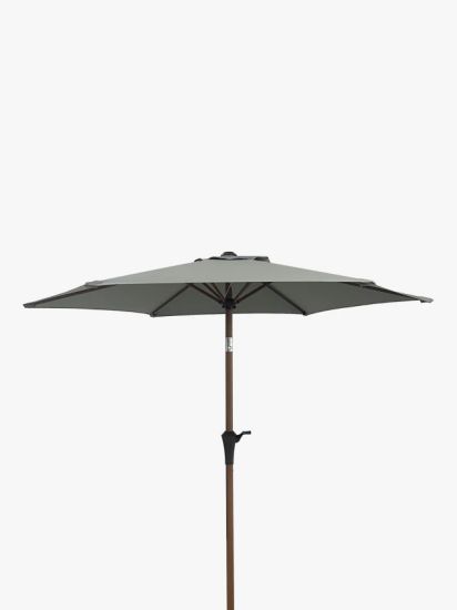 This garden parasol offers targeted sun protection with an easy-winding mechanism and adjustable tilt. The parasol has a rain canopy with UV50+ sun protection and a corrosion-resistant aluminium pole with a stylish wood-effect finish. Shock-resistant ribs complete this sturdy design.